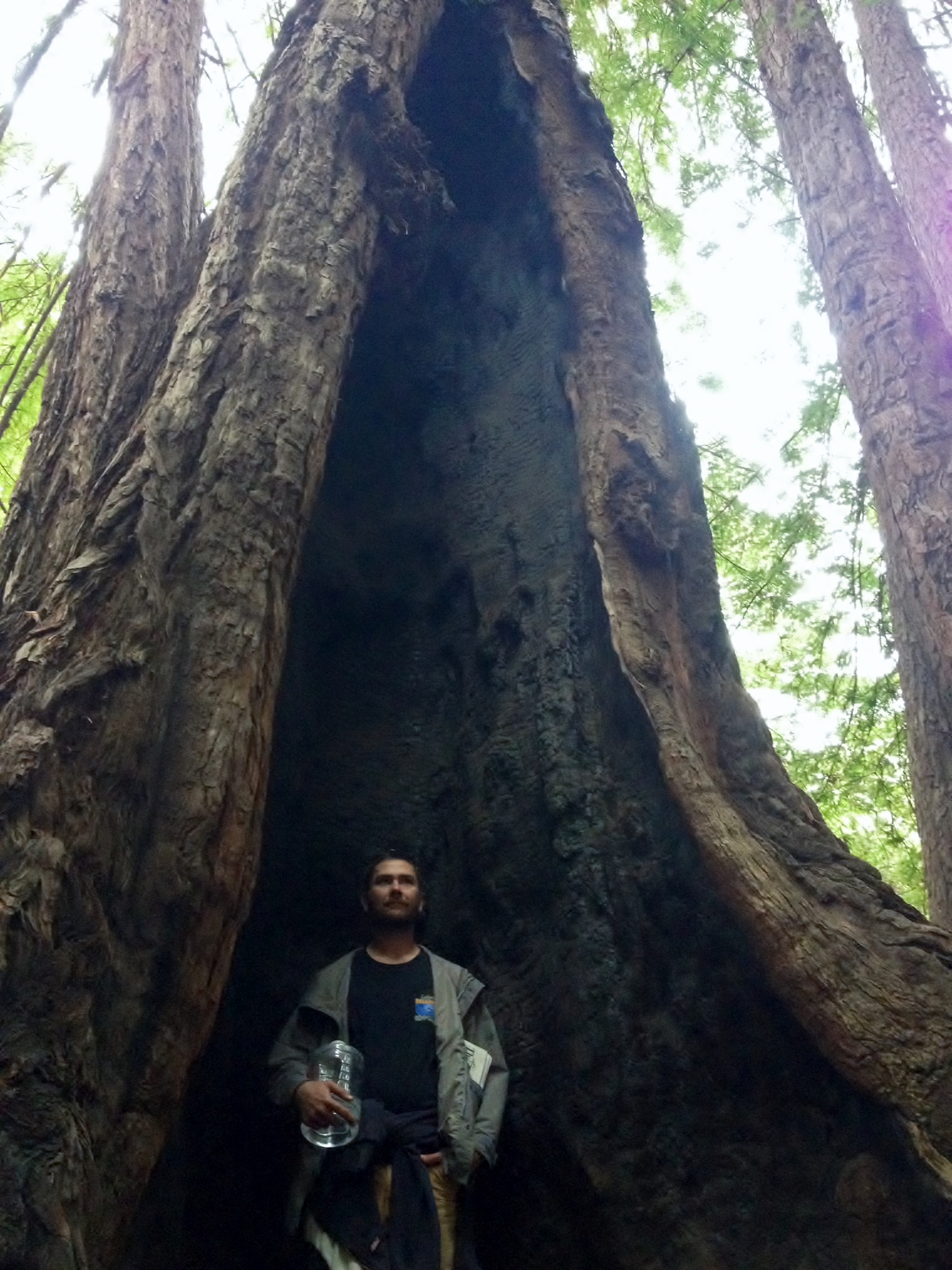 This tree, like the one in Big Sur, also has a root system over a thousand years old. The early loggers stood on springboards twenty feet up that acted like scaffolding, helping the trees fall in the right direction. They would cut a notch with axes and use an enormous crosscut saw to bring down the 300 foot beasts. It all seems so dangerous and unimaginable.